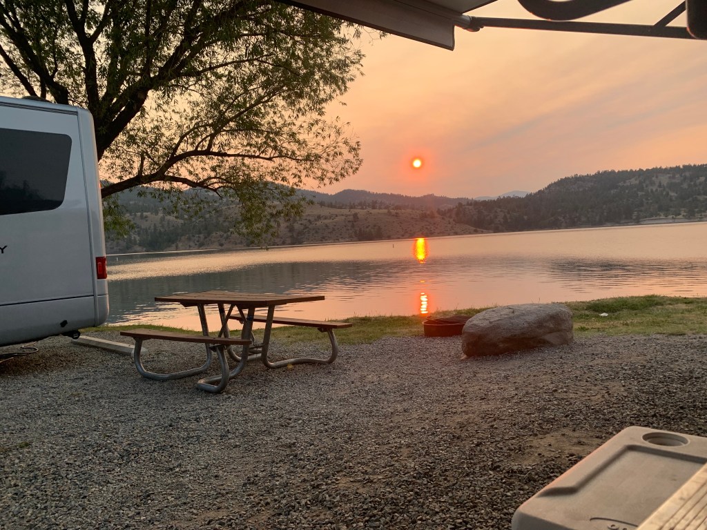 Not a lot to say about the night we stayed over in Helena at the Black Sandy Campground. It was hot and dusty and we really just wanted to sleep and wake to start all over again. The view, however, was pleasant enough.